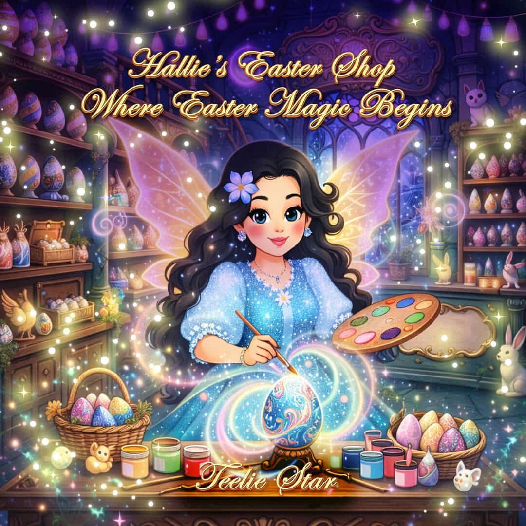 Step into the colorful world of Hallie’s Easter Shop, where cheerful bunny helpers, sparkling Easter eggs, and magical surprises fill every corner of this delightful fairy tale. Created by Teelie Turner, this charming story invites young readers into a whimsical Easter shop filled with joy, imagination, and the magic of spring. It’s a heartwarming adventure perfect for children who love fairies, Easter celebrations, and enchanting stories.