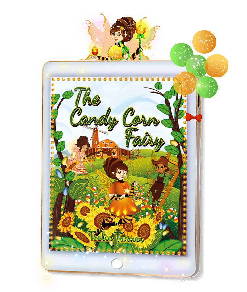 Hello everyone, I’m Kindy the Candy Corn Fairy and in this story that was written and illustrated by Teelie Turner, you’re going to meet me and find out about a problem that I’m experiencing. There’s a shortage of candy corn and Halloween and the Candy Corn Ball are almost here. I hope that I can find a solution to this problem so that we have enough candy corn for all the important events that are going to take place. Keep reading to find out the rest of my story.