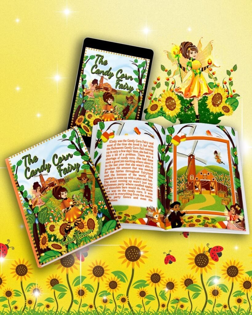 Hello everyone, I’m Kindy the Candy Corn Fairy and in this story that was written and illustrated by Teelie Turner, you’re going to meet me and find out about a problem that I’m experiencing. There’s a shortage of candy corn and Halloween and the Candy Corn Ball are almost here. I hope that I can find a solution to this problem so that we have enough candy corn for all the important events that are going to take place. Keep reading to find out the rest of my story.