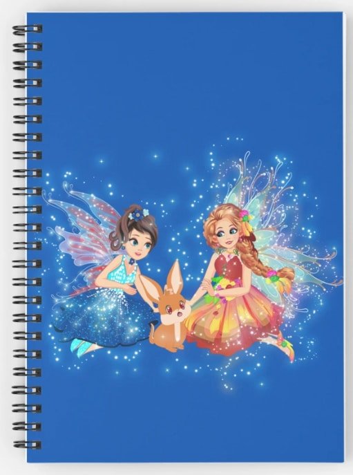Let your creativity soar with this delightful notebook featuring Felicia, Iaada, and their adorable pet bunny. It’s perfect for jotting down your thoughts, fairy tales, or magical lists.