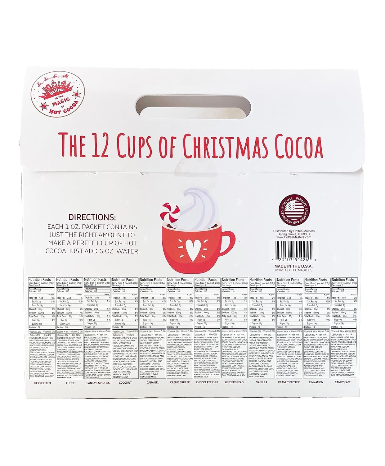 Twelve cozy flavors of hot cocoa await inside this warm and wonderful calendar. It’s a delightful treat for adults, children, and fairies who enjoy sipping something sweet by the fire.