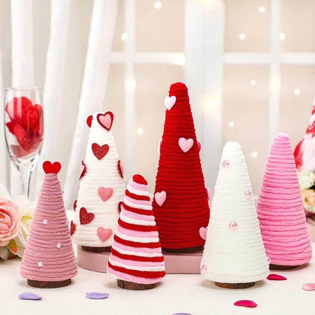 This set of six miniature tabletop trees features unique designs in classic Valentine’s colors of red, pink, and white. Whether displayed together or scattered throughout a space, they bring cheerful charm that fairies and humans will love.